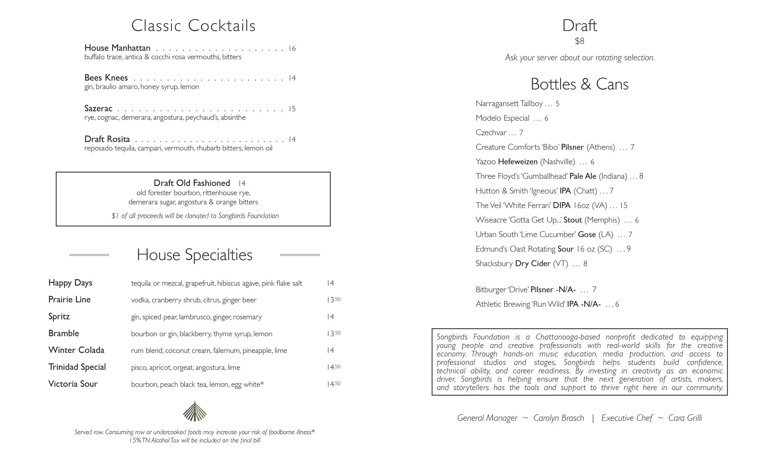We have a $20 corkage fee and there is a $15 dessert fee for any outside consumables brought in